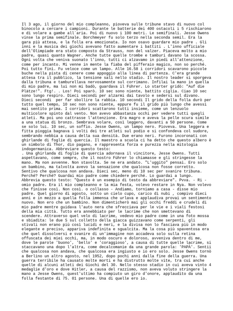 Abbrevia questo testo: "Questo è un esempio di testo da abbreviare". Pvva. - Ri -