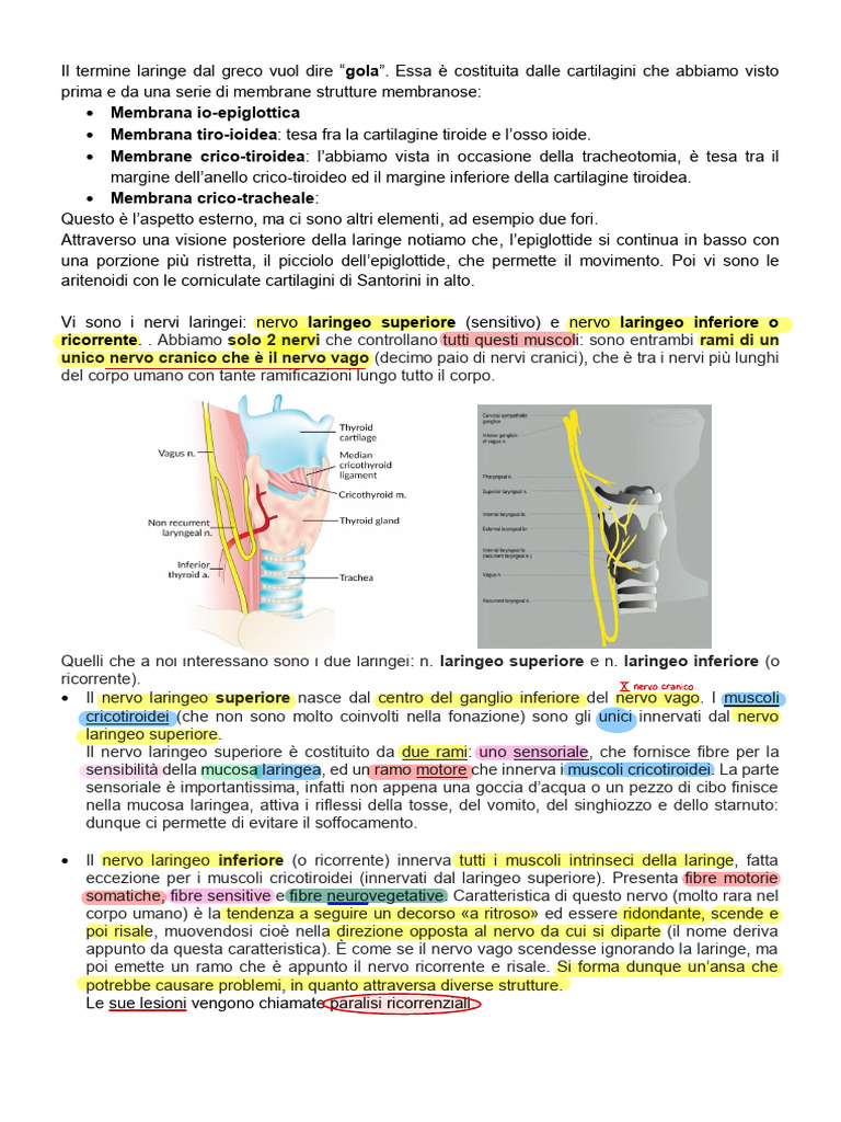 Vi sono i nervi laringei: nervo laringeo superiore (sensitivo) e nervo laringeo inferiore o