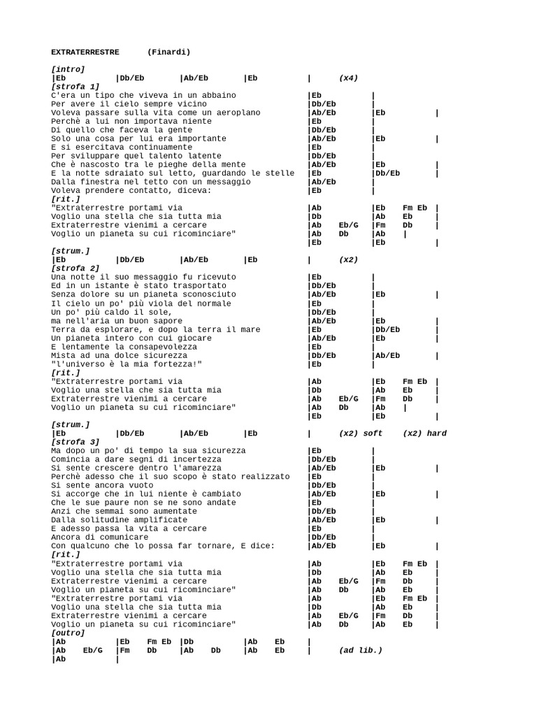 "Extraterrestre portami via |Ab |Eb Fm Eb |