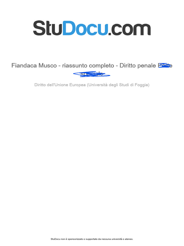 Fiandaca Musco Riassunto Completo Diritto Penale Parte Generale