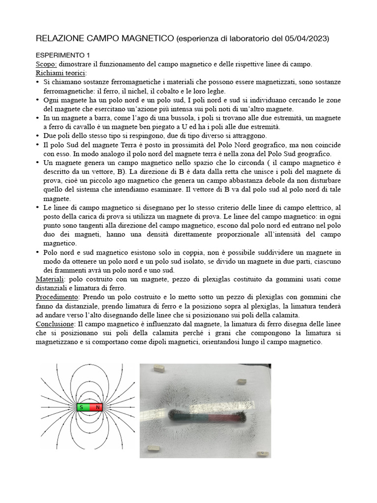 Scopo: funzionamento campo magnetico, linee di campo e influenza di un magnete su di esso.