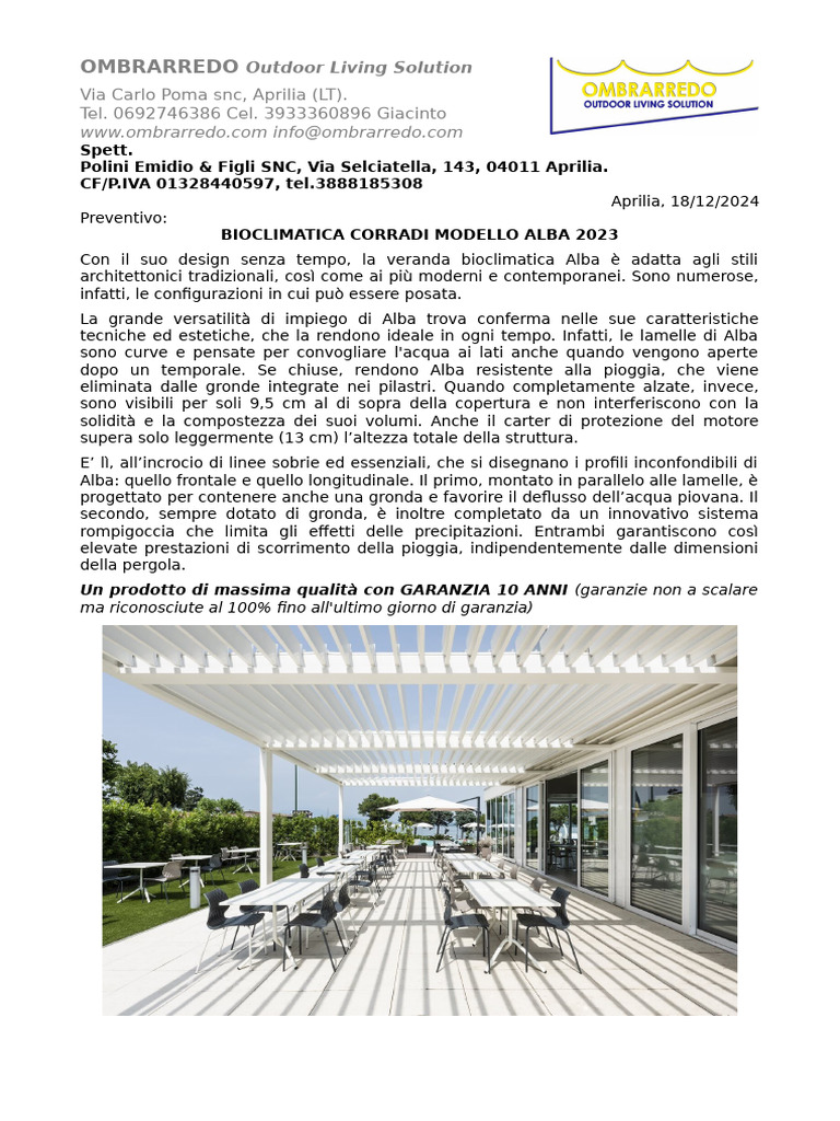 BIOCLIMATICA CORRADI MODELLO ALBA 2023