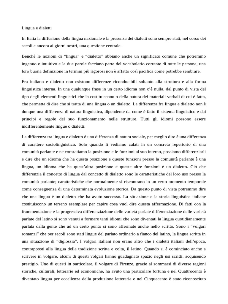 meno esteso. Lingua e dialetto sono dunque concetti relativi e complementari: tutte le lingue