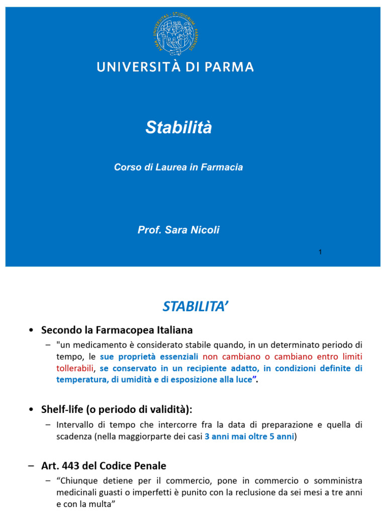 – "un medicamento è considerato stabile quando, in un determinato periodo di