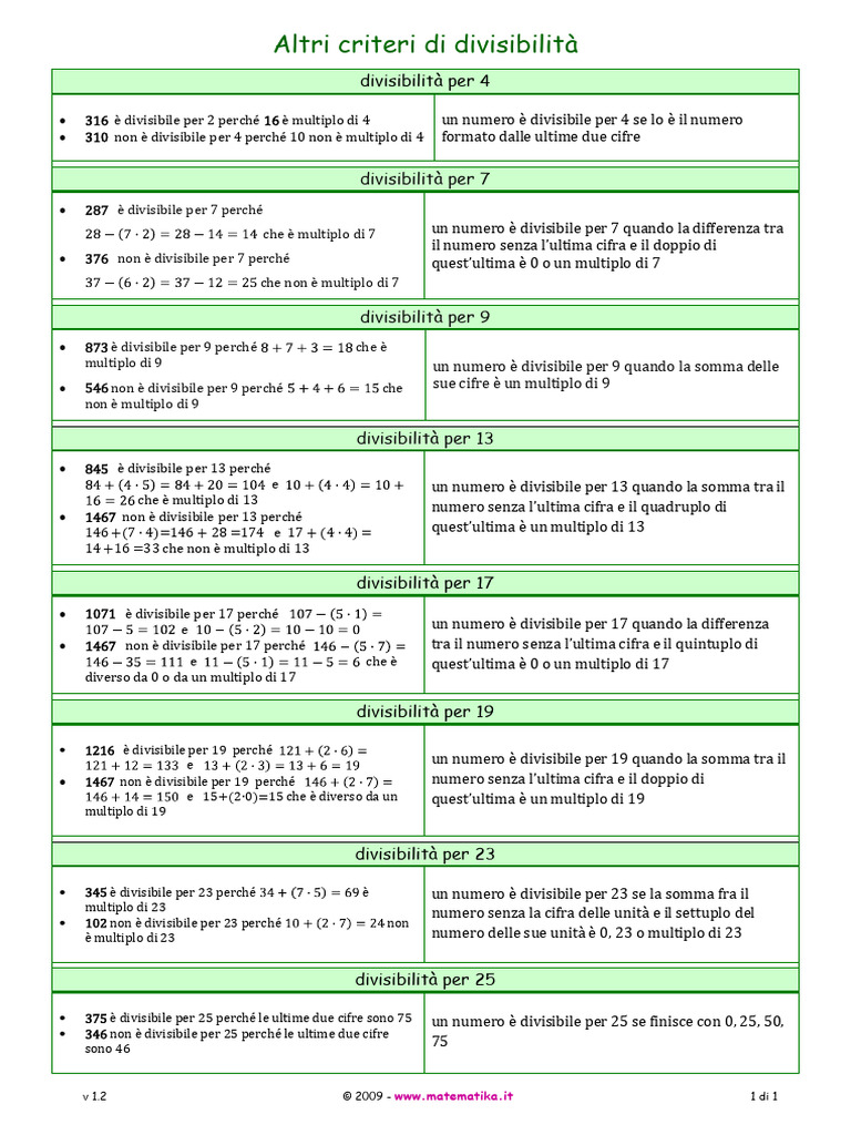 Altri criteri di divisibilità