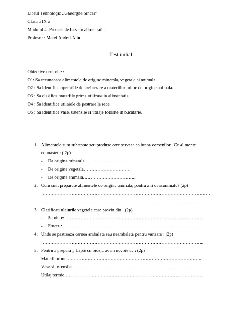 O3 : Sa clasifice materiile prime utilizate in alimentatie.