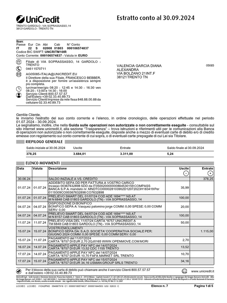 Estratto conto al 30.09.2024