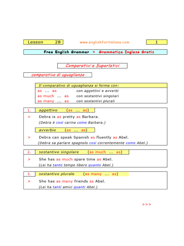 superlativo con more e most.