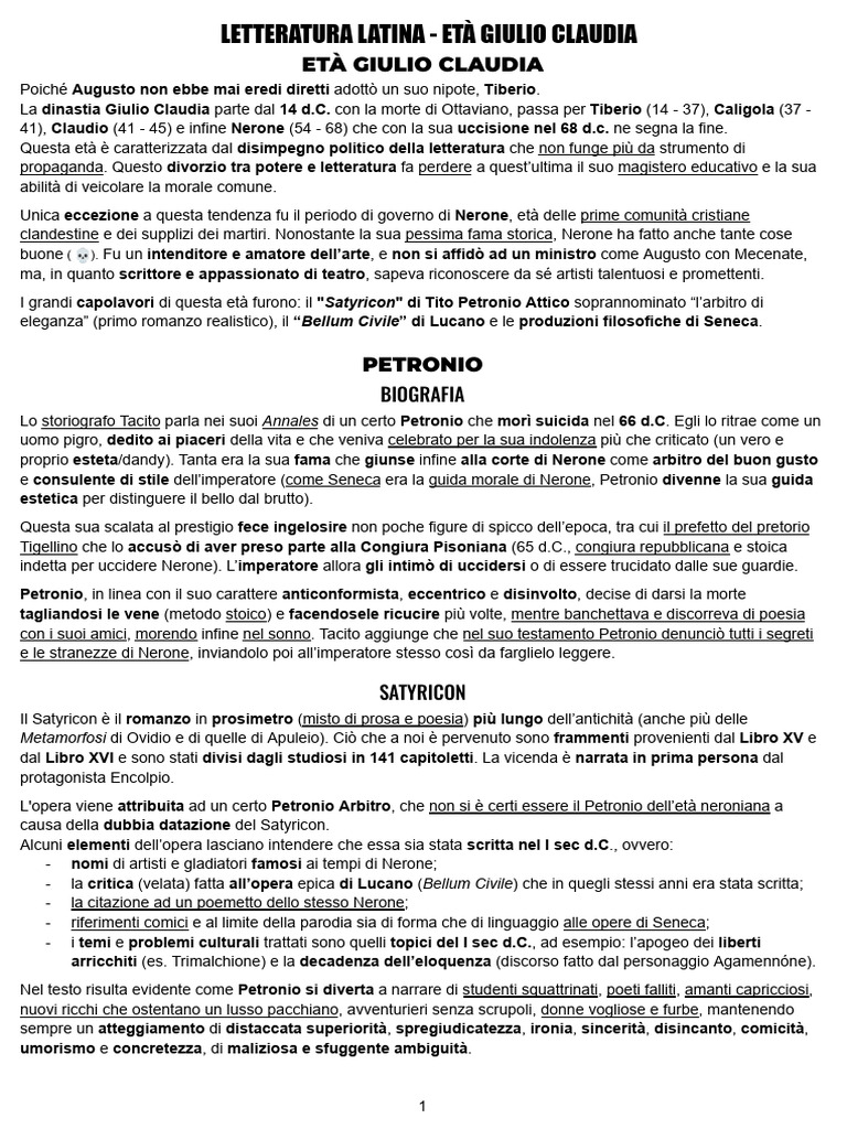 LETTERATURA LATINA - ETÀ GIULIO CLAUDIA