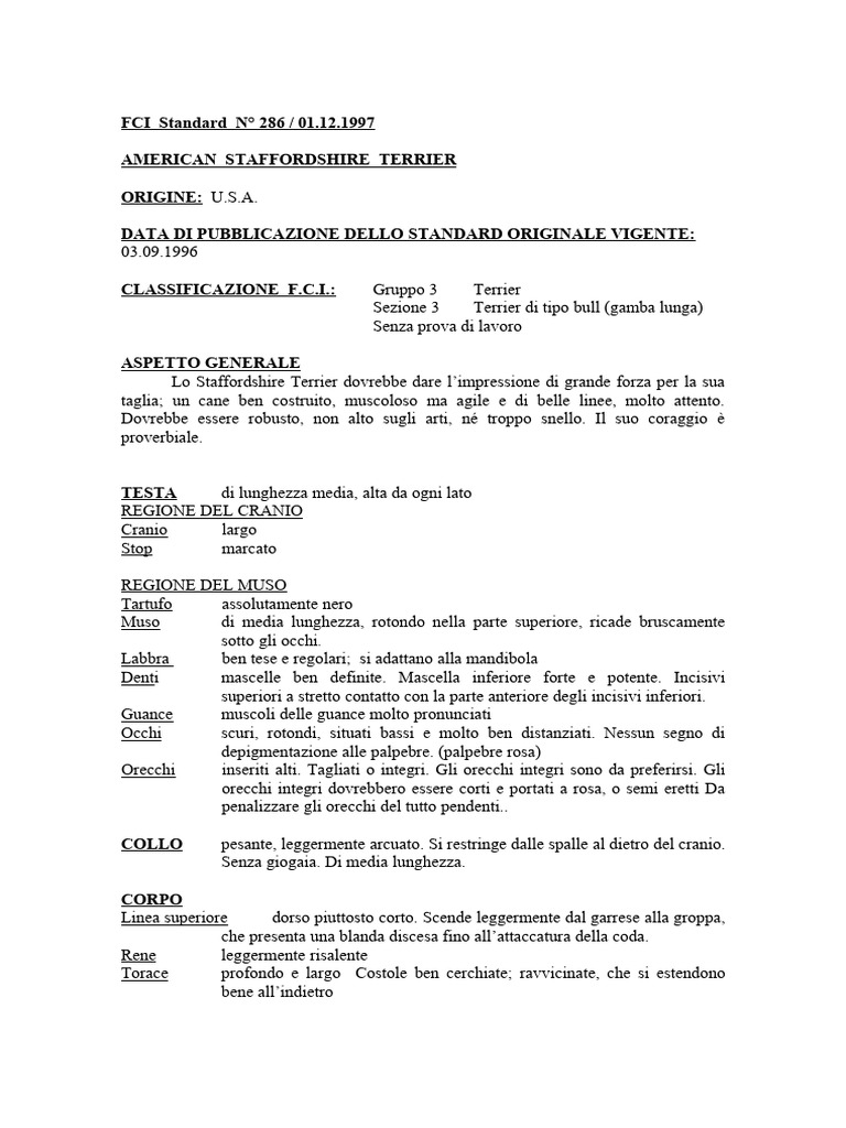 Lo Staffordshire Terrier dovrebbe dare l’impressione di grande forza per la sua