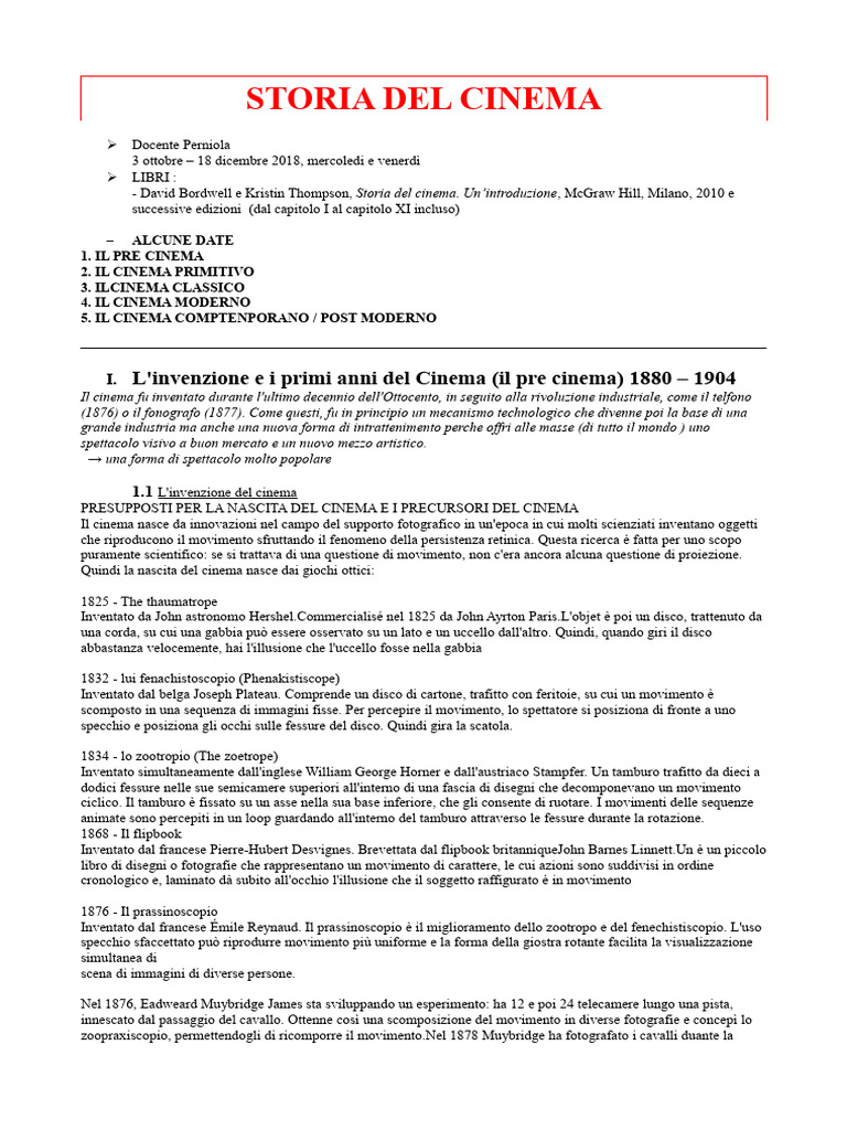 I. L'invenzione e i primi anni del Cinema (il pre cinema) 1880 – 1904
