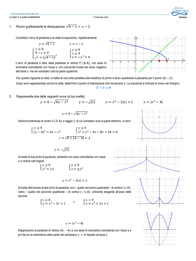 CLASSE 3^ A LICEO SCIENTIFICO 17 Dicembre 2019 Parabola