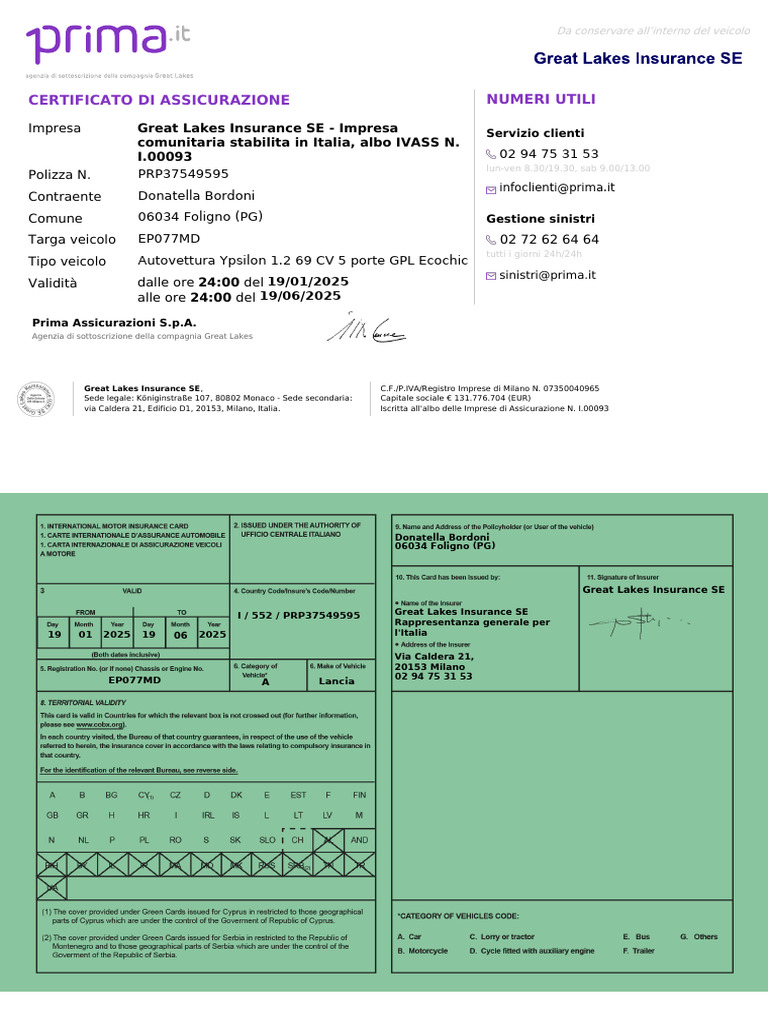 Great Lakes Insurance SE, C.F./[Link]/Registro Imprese di Milano N. 07350040965