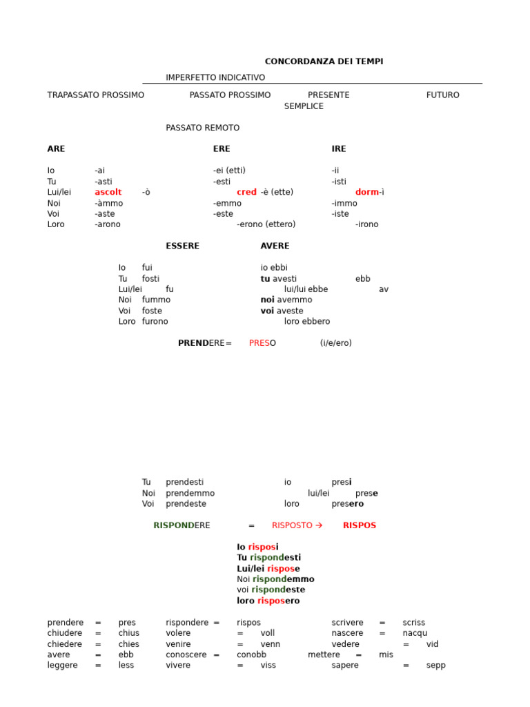 prendere = pres rispondere = rispos scrivere = scriss