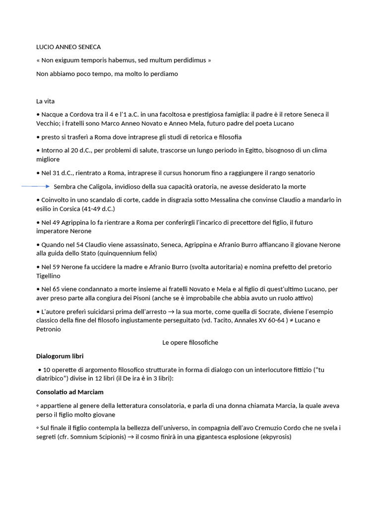 ◦ appartiene al genere della letteratura consolatoria, e parla di una donna chiamata Marcia, la quale aveva