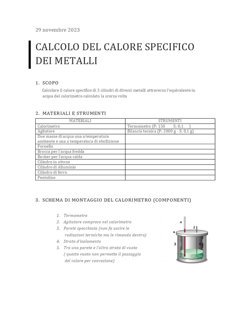 CALCOLO DEL CALORE SPECIFICO