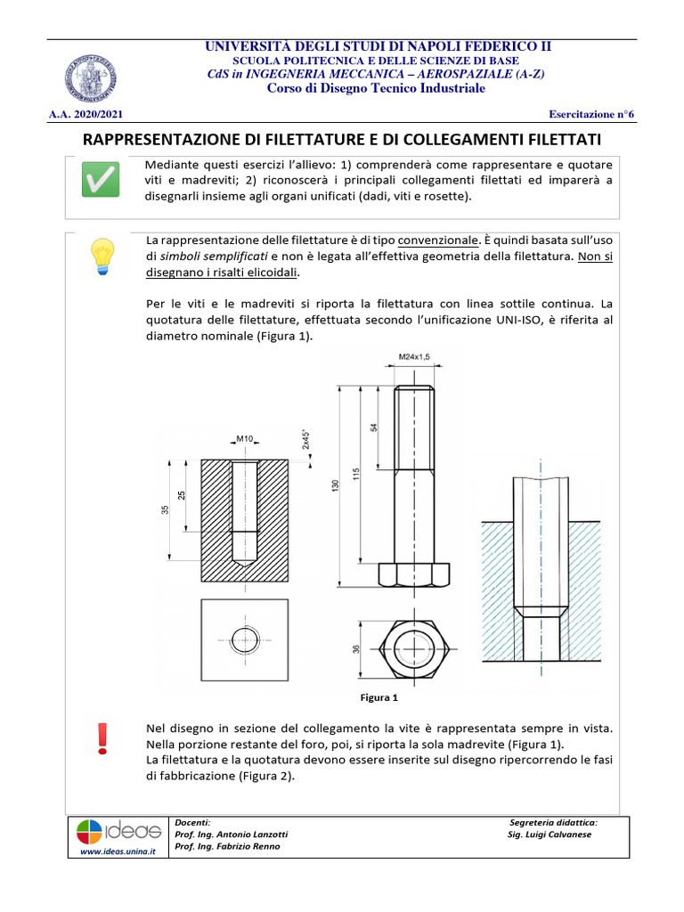 viti e madreviti; 2) riconoscerà i principali collegamenti filettati ed imparerà a