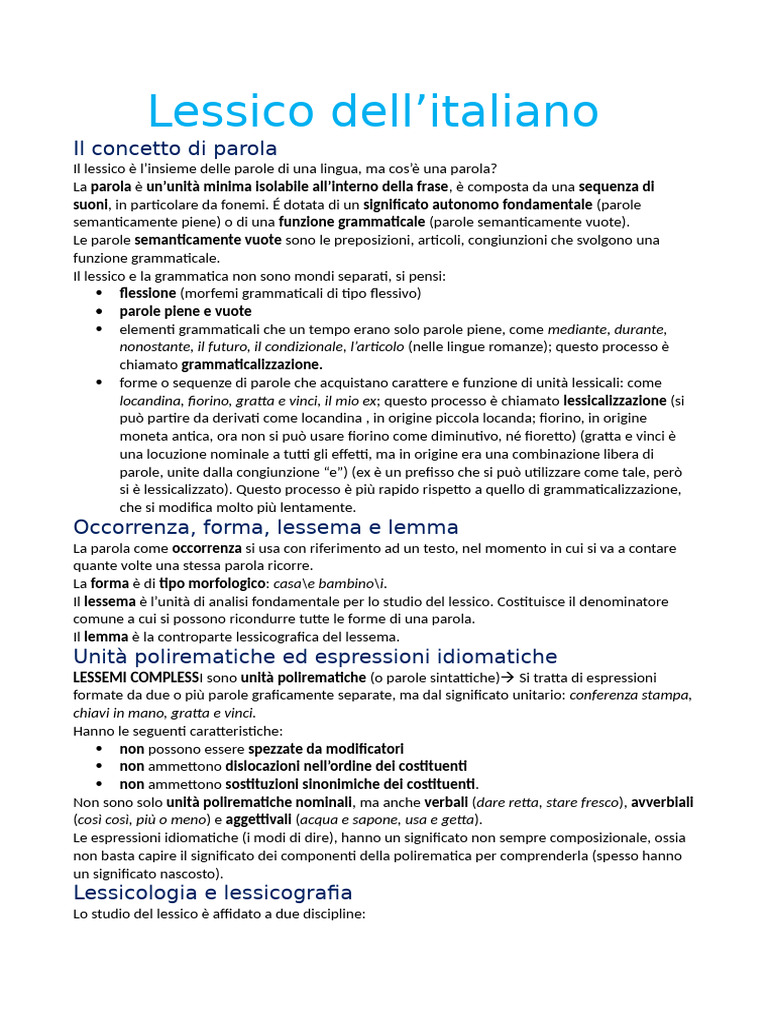 Lessico dell’italiano