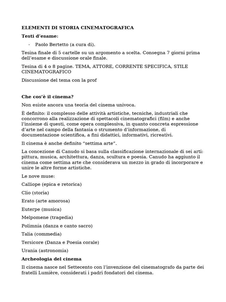 ELEMENTI DI STORIA CINEMATOGRAFICA