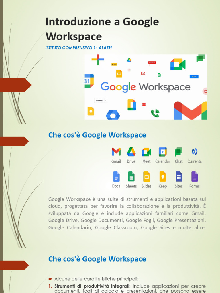 Google Calendario, Google Classroom, Google Sites e molte altre.