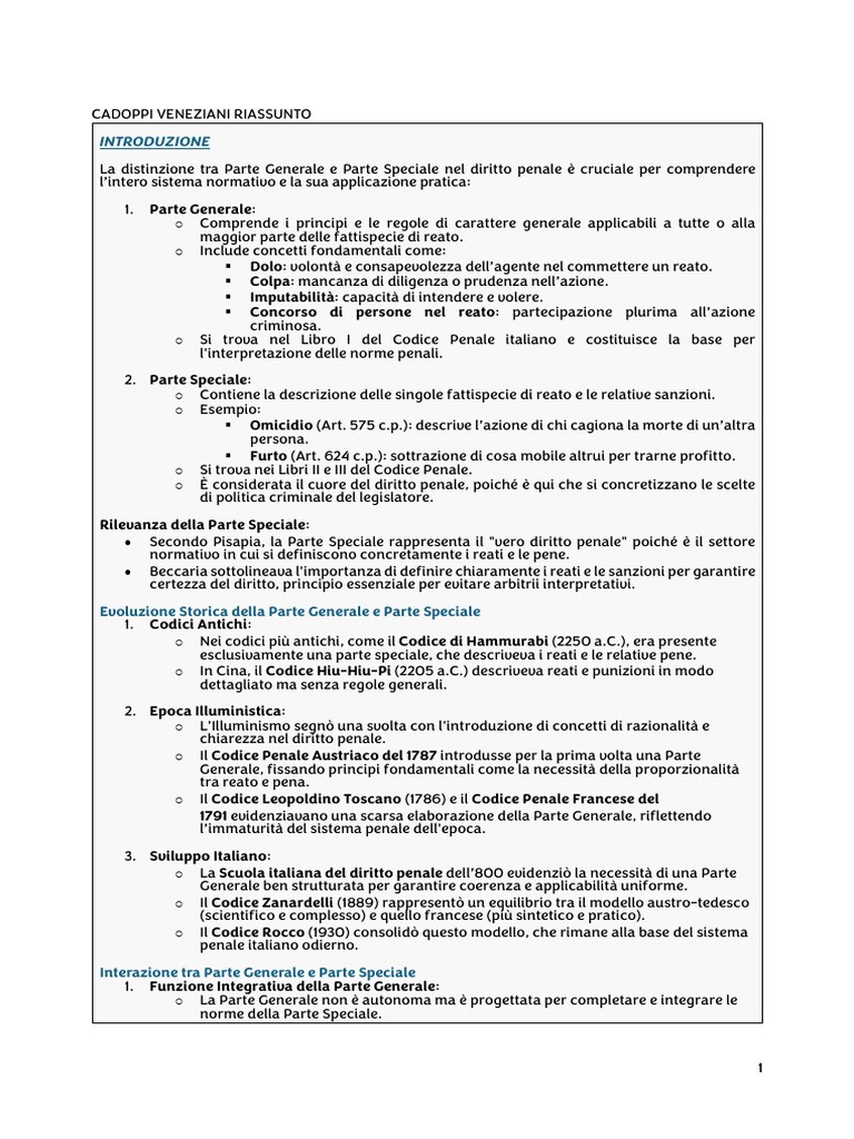 Evoluzione Storica della Parte Generale e Parte Speciale
