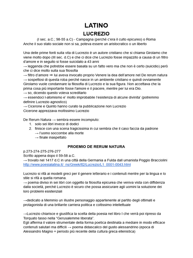 → Apprezza moltissimo la poesia di Lucrezio, a volte lo cita quasi parola per parola