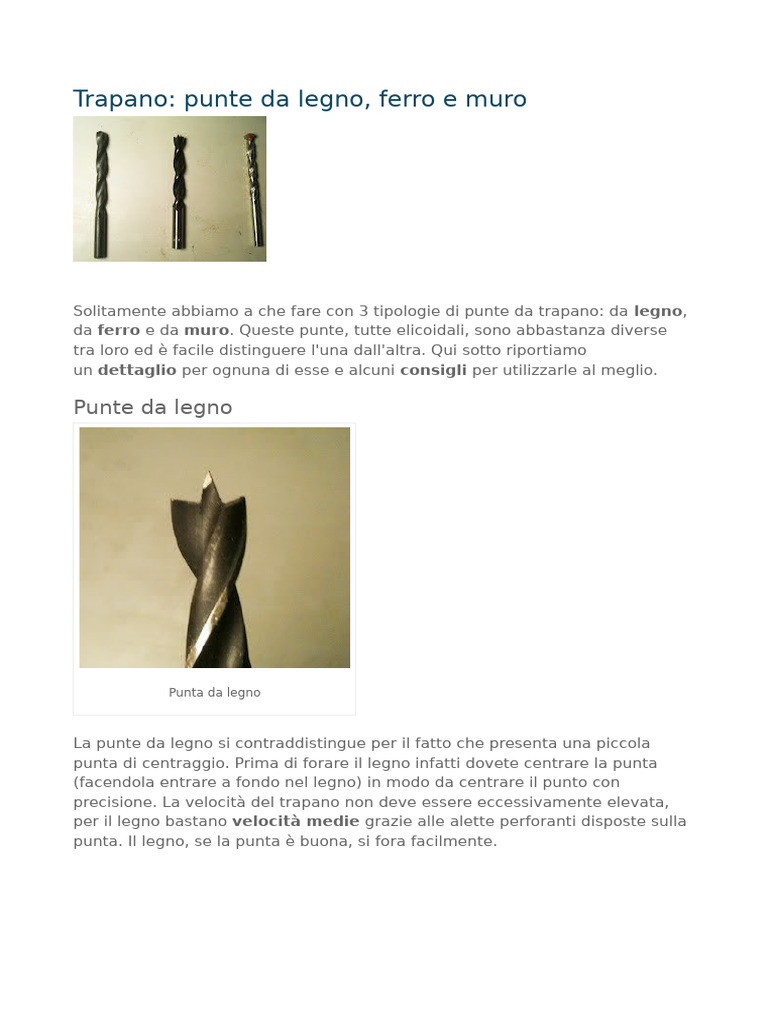 da ferro e da muro. Queste punte, tutte elicoidali, sono abbastanza diverse