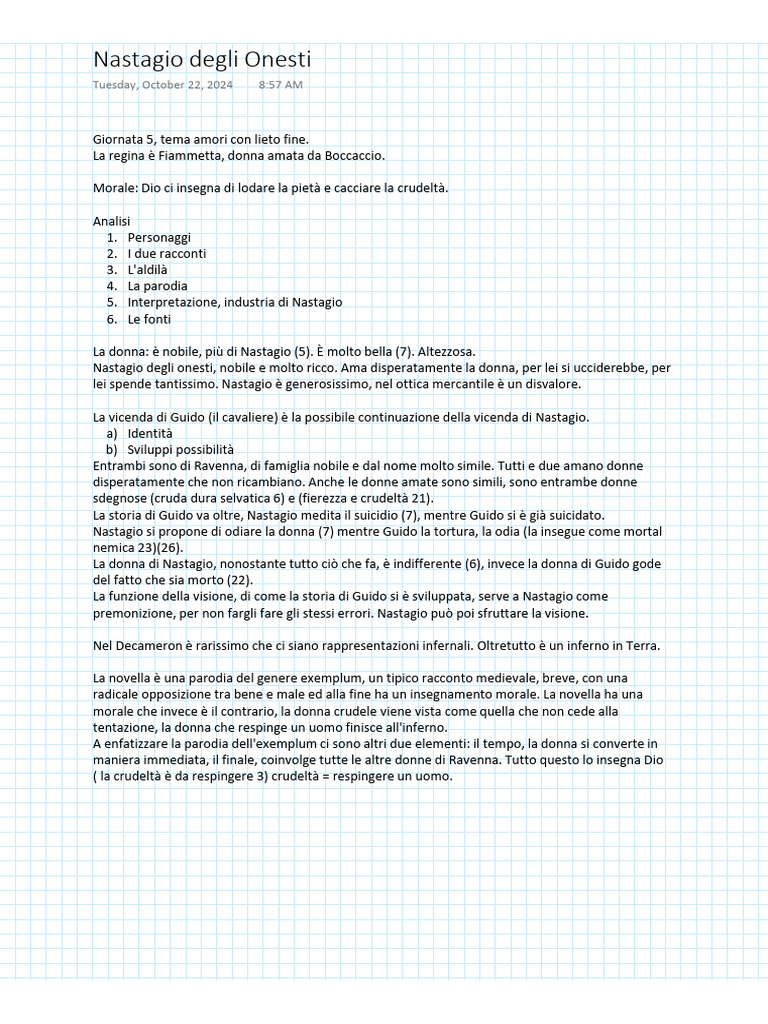 La vicenda di Guido (il cavaliere) è la possibile continuazione della vicenda di Nastagio.