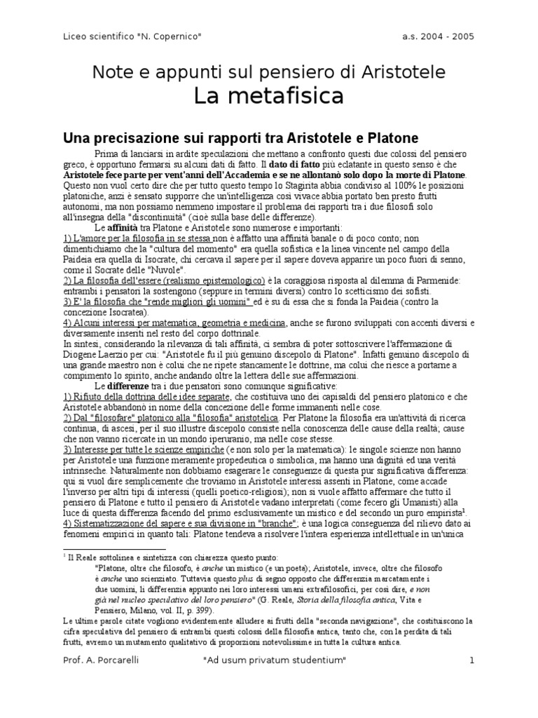 Reale, op. cit., vol. II, pag. 432. Aristotele, Metafisica, libro IX, 1049b-1050b; ed. BUL pp. 266-269. "Ad usum privatum studentium" 8