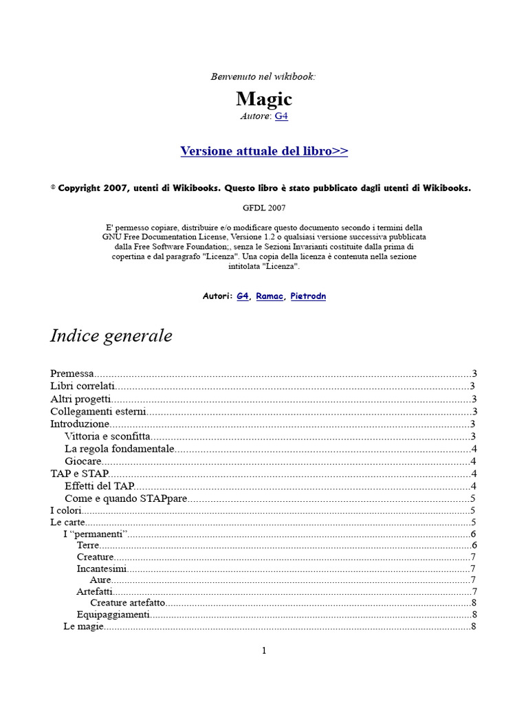 Questo libro vuole raccogliere le regole del gioco di carte collezionabili Magic.