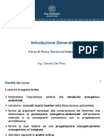 - Cenni di comfort termico (bilancio uomo ambiente, indici di valutazione PMV, temperatura operante) e di IAQ (Indoor
