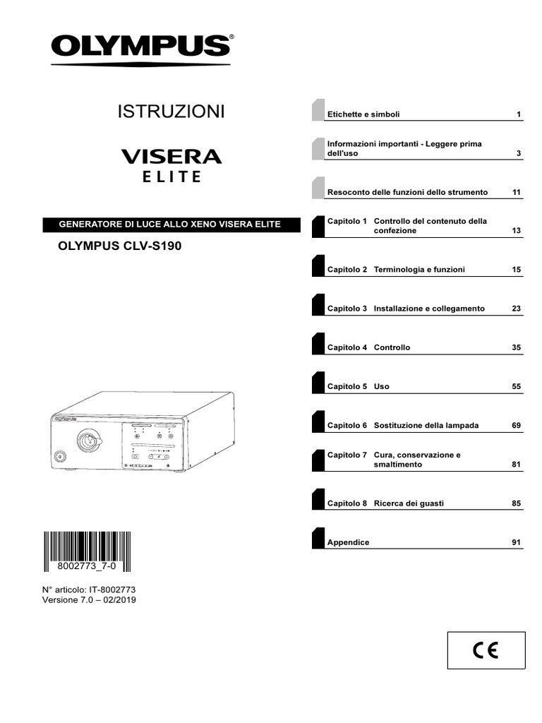 istruzioni contenute nel capitolo 8, contattare Olympus. Il generatore di luce deve essere riparato