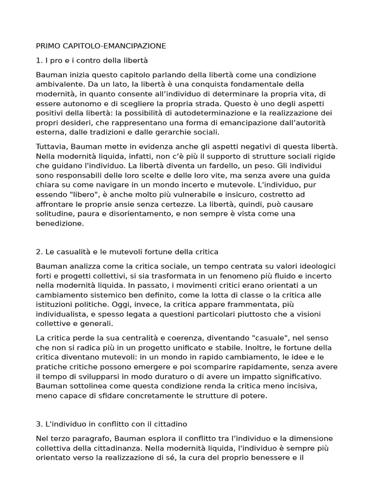 In sintesi, Bauman analizza la trasformazione della libertà, della critica, della