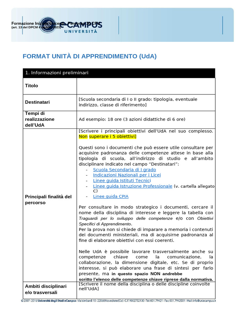 FORMAT UNITÀ DI APPRENDIMENTO (UdA)