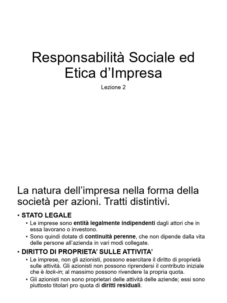 • Le imprese, non gli azionisti, possono esercitare il diritto di proprietà