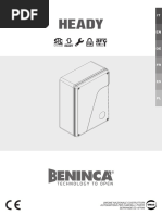 Wir danken Ihnen, da Sie sich fr diese Anlage entschieden haben. Ganz sicher wird sie mit ihren Leistungen Ihren Ansprchen vollauf gerecht werden. Lesen Sie aufmerksam die Broschre mit den GEBRAUCHSANWEISUNGEN durch, die dem Produkt beiliegen. Sie enthlt wichtige Hinweise zur Sicherheit, Installation, Bedienung und Wartung der Anlage. Dieses Produkt gengt den anerkannten technischen Normen und Sicherheitsbestimmungen. Wir besttigen, da es mit folgenden Europischen Richtlinien bereinstimmt: 2004/108/EWG, 2006/95/EWG, 2006/42/EWG und nachfolgende nderungen. 1) ALLGEMEINE SICHERHEITSHINWEISE VORSICHT! Montagefehler oder der unsachgeme Gebrauch des Produktes knnen zu Personen-oder Sachschden fhren. Lesen Sie aufmerksam die Broschre mit den Hinweisen und die Gebrauchsanweisung, die dem Produkt beiliegen. Sie enthalten wichtige Hinweise zur Sicherheit, Montage, Bedienung und Wartung der Anlage. Verpackungsmaterialien (Plastik, Karton, Polystyrol u. a.) sind nach den einschlgigen Vorschriften zu entsorgen. Keine Nylon-oder Polystyroltten in Reichweite von Kindern liegenlassen. Die Anleitung ist fr zuknftige Einsichtnahme als Beilage zur technischen Akte aufzubewahren. Dieses Produkt wurde ausschlielich fr den Gebrauch entwickelt und gebaut, so wie er in dieser Dokumentation beschrieben wird. Davon abweichende Verwendungen knnen Schadens und Gefahrenquellen darstellen. Der Hersteller lehnt jede Verantwortung fr Folgen ab, die durch den unsachgemen oder nicht bestimmungsgemen, weil in dieser Dokumentation nicht genannten Gebrauch entstehen. Die Anlage darf nicht in explosionsgefhrdeter Atmosphre installiert werden. Die Bauteile der Maschine mssen den folgenden Europischen Richtlinien entsprechen: 2004/108/EWG, 2006/95/EWG, 2006/42EWG und nachfolgende nderungen. Fr alle Lnder auerhalb der EWG gilt: Neben den geltenden Landesvorschriften sollten aus Sicherheitsgrnden auch die oben genannten Bestimmungen beachtet werden. Der Hersteller lehnt jede Verantwortung fr Folgen ab, die durch nicht fachgerechte Ausfhrungen von Schlievorrichtungen (Tren, Tore usw), oder durch Verformungen whrend des Betriebes entstehen. Die Montage mu im Einklang mit folgenden Europischen Richtlinien erfolgen: 2004/108/EWG, 2006/95/EWG, 2006/42EWG und nachfolgende nderungen. Vor jedem Eingriff an der Anlage die Stromversorgung unterbrechen. Auch Pufferbatterien abklemmen, falls vorhanden. Versehen Sie die Versorgungsleitung der Anlage mit einem Schalter oder allpoligen magnetthermischen Schutzschalter mit einem Kontaktabstand von mindestens 3,5 mm. Der Versorgungsleitung mu ein Fehlerstromschutzschalter mit einer Schwelle von 0.03A vorgeschaltet sein. Prfen Sie den Erdungsanschlu: Alle Metallteile der Schlievorrichtung (Tren, Tore usw.) und alle Anlagenkomponenten mit Erdungsklemme anschlieen. Alle Sicherheitsvorrichtungen (Fotozellen, Sicherheitsleisten u.a.) anbringen, die verhindern, da sich im Torbereich jemand quetscht, schneidet oder mitgerissen wird. Mindestens eine Leuchtsignaleinrichtung (Blinklicht) an gut sichtbarer Stelle anbringen. Befestigen Sie ein Warnschild am Torgestell. Der Hersteller lehnt jede Verantwortung fr die Sicherheit und die Funkti onstchtigkeit der Anlage ab, wenn Komponenten anderer Produzenten verwendet werden. Fr Wartungen und Reparaturen ausschlielich Originalteile verwenden. Keine Umbauten an Anlagenkomponenten vornehmen, wenn sie nicht ausdrcklich vom Hersteller genehmigt wurden. Weisen Sie den Anlagennutzer in die vorhandenen Steuerungssysteme und die manuelle Torffnung im Notfall ein. Kindern oder Erwachsenen ist es nicht gestattet, im Aktionsbereich der Anlage zu verweilen. Keine Fernbedienungen oder andere Steuerungsvorrichtungen in Reich weite von Kindern liegenlassen. Sie knnten die Anlage versehentlich in Gang setzen. Der Betreiber hat jeden Versuch eines Eingriffes oder der Reparatur zu unterlassen. Nur entsprechend qualifizierte Fachleute sind hierzu befugt. Alles, was nicht ausdrcklich in dieser Anleitung genannt ist, ist untersagt. Die Installation mu mit Sicherheits- und Steuerungsvorrichtungen vorgenommen werden, die der Norm EN 12978 entsprechen.