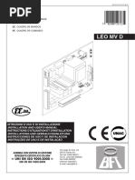 Agradecendolhe pela preferncia dada a este produto, a Empresa tem a certeza que do mesmo obter as prestaes necessrias ao seu uso. Leia atentamente o opsculo Manual de instrues que o acompanha, pois que esse fornece indicaes importantes respeitantes a segurana, a instalao, o uso e a manuteno. Este produto est em conformidade com as normas reconhecidas pela tcnica e pelas disposies relativas segurana. Confirmamos que o mesmo est em conformidade com as seguintes directivas europeias: 2004/108/ CEE, 2006/95/CEE, 2006/42/CEE e suas modificaes sucessivas. 1) SEGURANA GENERAL ATENO! Uma instalao errada ou um uso imprprio do produto, podem provocar danos a pessoas, animais ou coisas. Leia atentamente o fascculo Advertncias e o Manual instrues que acompanham este produto, pois que fornecem indicaes importantes respeitantes a segurana, a instalao, o uso e a manuteno. Elimine os materiais de embalagem (plstico, carto, polistireno, etc.) de acordo com quanto previsto pelas normas vigentes. No deixe sacos de nylon e polistireno ao alcance das crianas. Conserve as instrues para anexlas ao fascculo tcnico e para poder consultlas no futuro. Este produto foi projectado e construdo exclusivamente para o uso indicado nesta documentao. Usos no indicados nesta documentao, poderiam constituir fonte de danos para produto e fonte de perigo. A Empresa declina qualquer responsabilidade derivante do uso imprprio ou diverso daquele para o qual destinado e indicado nesta documentao. No instale o produto em atmosfera explosiva. Os elementos de construo da mquina devem estar de acordo com as seguintes Directivas Europeias: 2004/108/CEE, 2006/95/CEE, 2006/42/CEE e modificaes sucessivas. Para todos os Pases fora da CEE, para alm das normas nacionais vigentes, para um bom nvel de segurana tambm oportuno respeitar as normas supracitadas. A Empresa declina qualquer responsabilidade pela inobservncia da Boa Tcnica na construo dos fechos (portas, portes, etc.), assim como pelas deformaes que poderiam verificarse durante o uso. A instalao deve estar de acordo com quanto previsto pelas Directivas Europeias: 2004/108/CEE, 2006/95/CEE, 2006/42/CEE e modificaes sucessivas. Interrompa a alimentao elctrica, antes de qualquer interveno na instalao. Desligue tambm eventuais baterias compensadoras, se presentes. Instale na rede de alimentao da automatizao, um interruptor ou um magnetotrmico omnipolar com distncia de abertura dos contactos igual ou superior a 3,5 mm. Verifique que a montante da rede de alimentao, haja um interruptor diferencial com limite de 0.03A. Verifique se a instalao de terra foi realizada correctamente: ligue todas as partes metlicas de fecho (portas, portes, etc.) e todos os componentes da instalao providos de terminal de terra. Instale todos os dispositivos de segurana (fotoclulas, perfis sensveis, etc.) necessrios para proteger a rea de perigos de esmagamento, arrastamento, tesourada. Instale pelo menos um dispositivo de sinalizao luminosa (lampejante) numa posio visvel, fixe estrutura um cartaz de Ateno. A Empresa declina qualquer responsabilidade relativa segurana e ao bom funcionamento da automatizao, se forem utilizados componentes de outros produtores. Use exclusivamente peas originais para qualquer manuteno ou reparao. No efectue nenhuma modificao nos componentes da automatizao, se no for expressamente autorizada pela Empresa. Instrua o utilizador da instalao, no que diz respeito os sistemas de comando instalados e a realizao da abertura manual no caso de emergncia. No permita a pessoas e crianas de ficarem paradas na rea de aco da automatizao. No deixe radiocomandos ou outros dispositivos de comando ao alcance de crianas, para evitar accionamentos involuntrios da automatizao. O utilizador deve evitar qualquer tentativa de interveno ou reparao da automatizao e valer-se unicamente de pessoal qualificado. Tudo aquilo que no expressamente previsto nestas instrues, no consentido. A instalao deve ser efectuada utilizando dispositivos de segurana e comandos conformes EN 12978. 2) GENERALIDADES O quadro de comandos LEO MV D fornecido pelo construtor com configurao standard. Toda e qualquer variao, deve ser definida atravs do programador com visor incorporado ou atravs de programador palmar universal. A central suporta completamente o protocolo EELINK. Est disponvel em duas verses: para instalao externa, dentro da caixa SD, ou montada e previamente cablada dentro do operador.