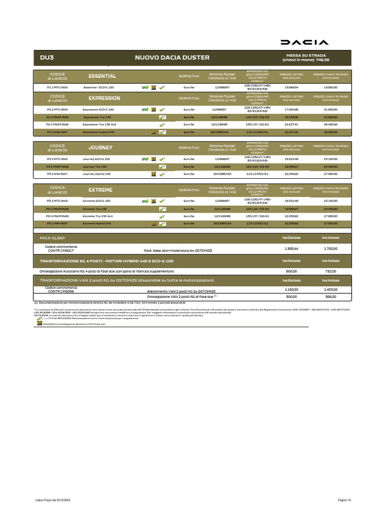 (UE) 2018/858 - (EU) 2018/1832 - (UE) 2019/1840 ed ogni loro successiva modifica o integrazione. Per maggiori informazioni consultare [Link]/ll-mondo-dacia/wltp/