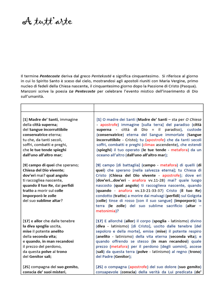 Attraverso varie figure retoriche Manzoni rende intensità all’invocazione liturgica, utilizzando: