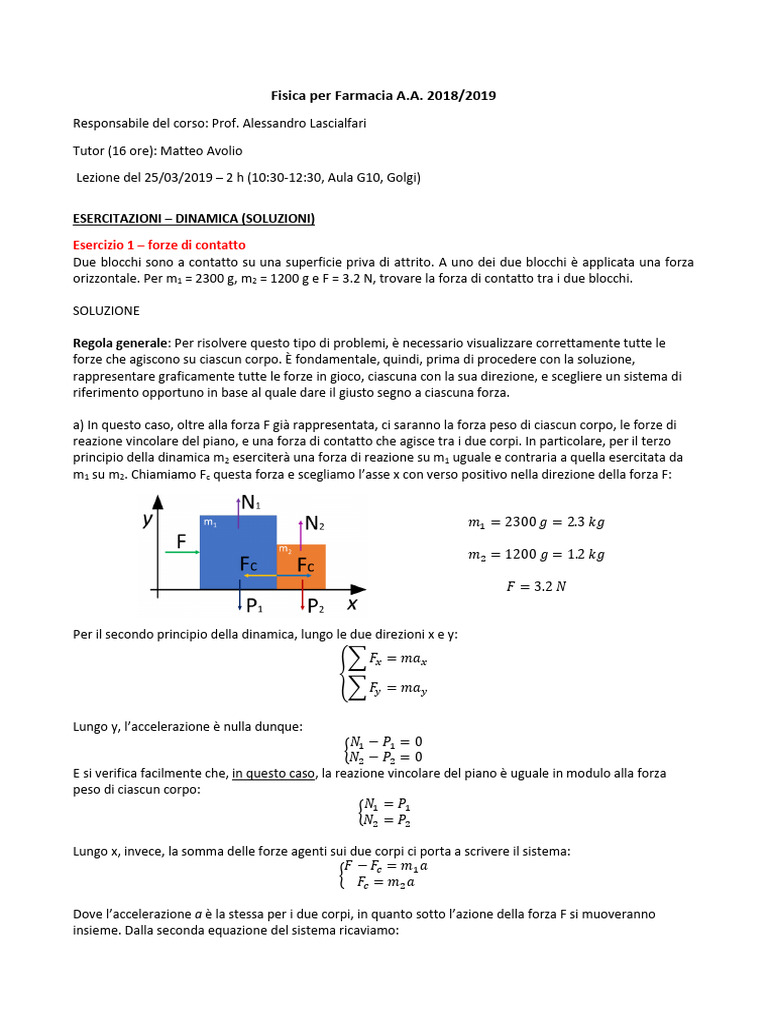 ESERCITAZIONI – DINAMICA (SOLUZIONI)