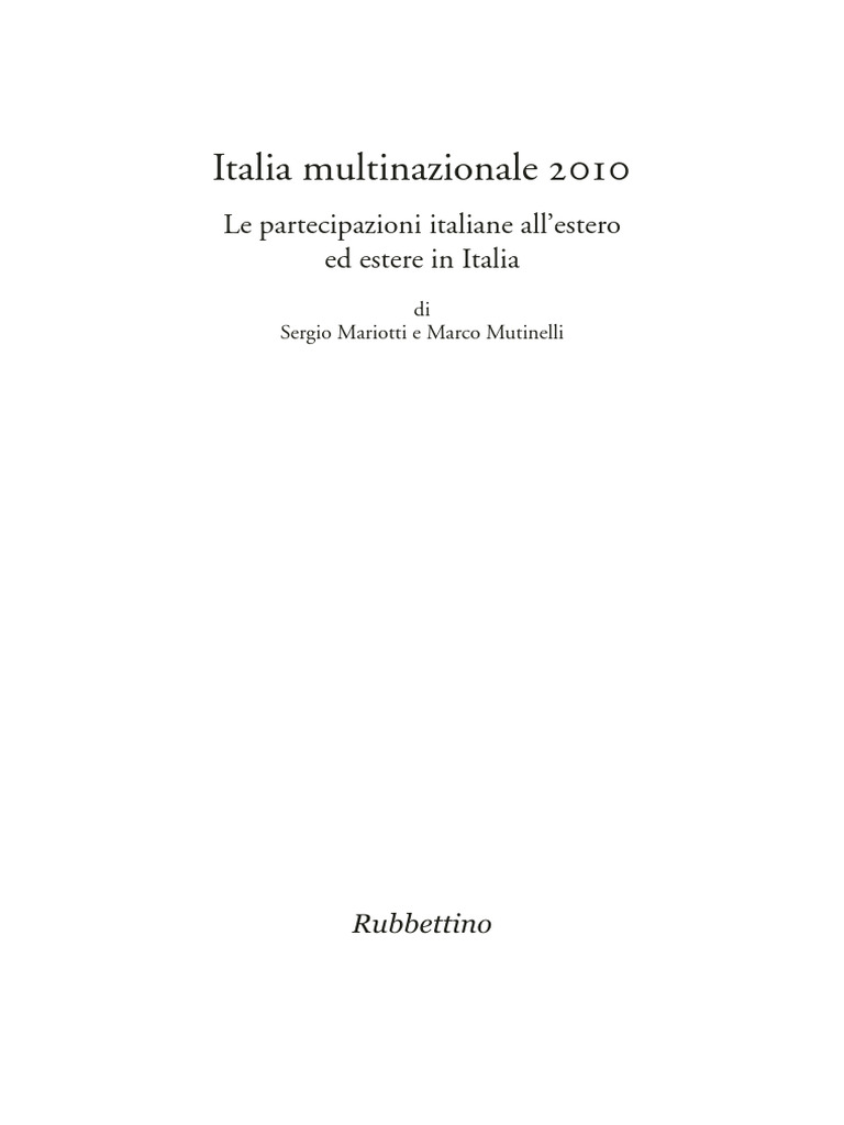 Mariotti S., Mutinelli M., Italia multinazionale 2008. Le partecipazioni ita-