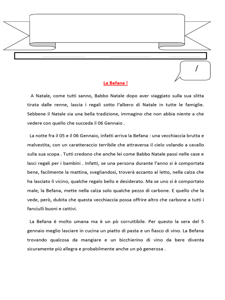 Durante il Natale, la Befana offre dei regali ai bambini . ..........