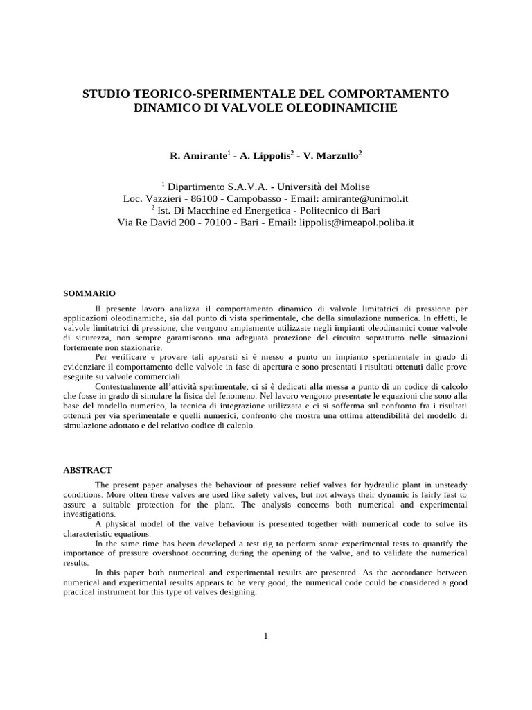 1. Amirante R., Lippolis A. (1997): “Analisi sperimentale di transitori su trasmissioni idrostatiche”, Atti del