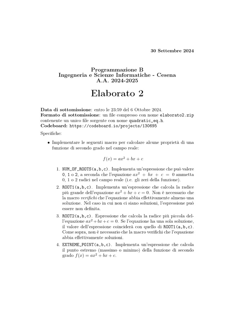 • Le macro devono essere definite in un file con nome quadratic_eq.h.