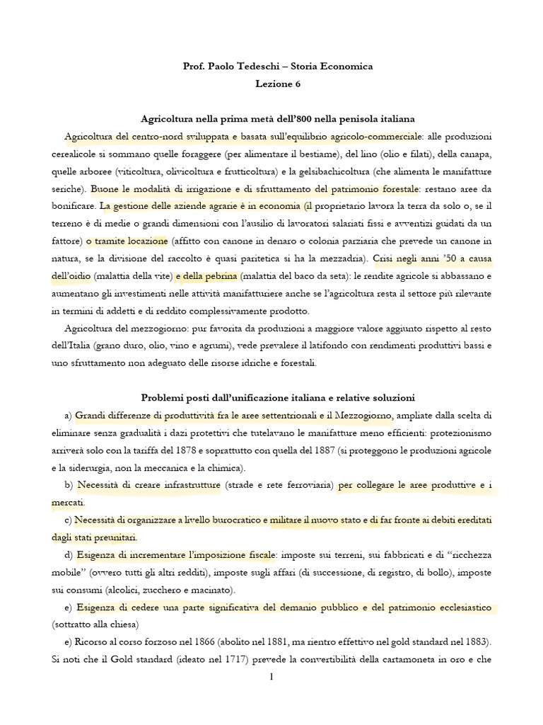 e) Ricorso al corso forzoso nel 1866 (abolito nel 1881, ma rientro effettivo nel gold standard nel 1883).