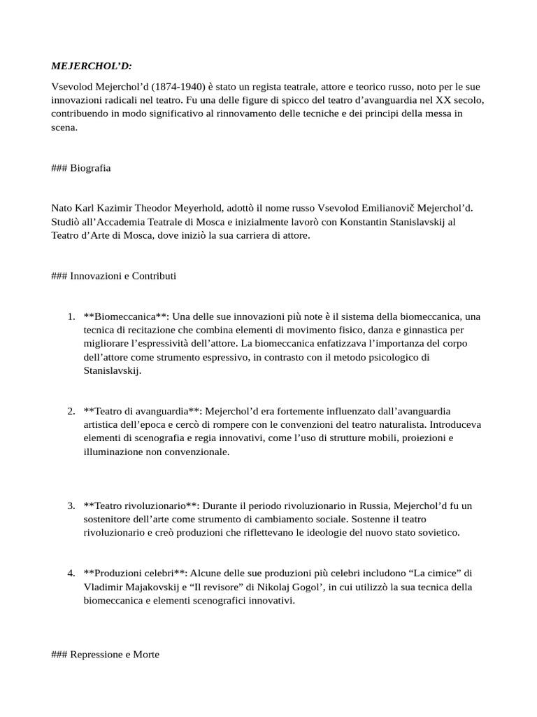 Vsevolod Mejerchol’d (1874-1940) è stato un regista teatrale, attore e teorico russo, noto per le sue