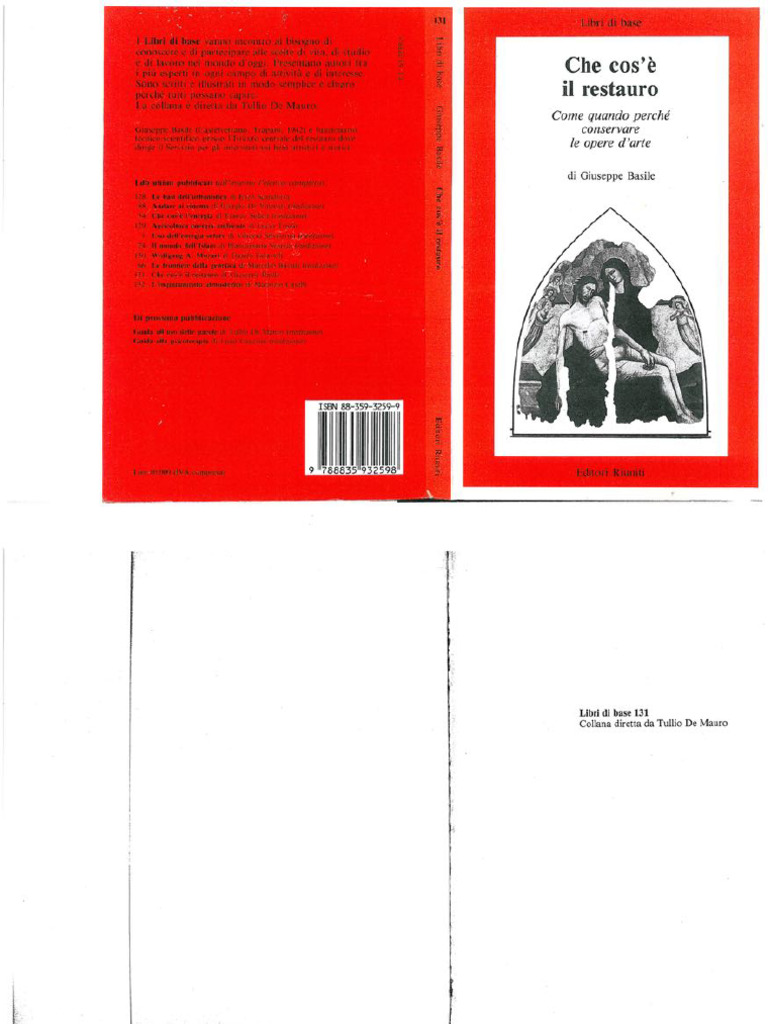 Il documento discute il concetto di restauro delle opere d'arte, esplorando le sue definizioni, tecniche e l'importanza della conservazione. Viene evidenziato come il restauro non sia solo un intervento fisico, ma anche un processo culturale e storico che richiede competenze specifiche. Inoltre, si analizzano esempi storici e le sfide legate alla preservazione del patrimonio artistico.