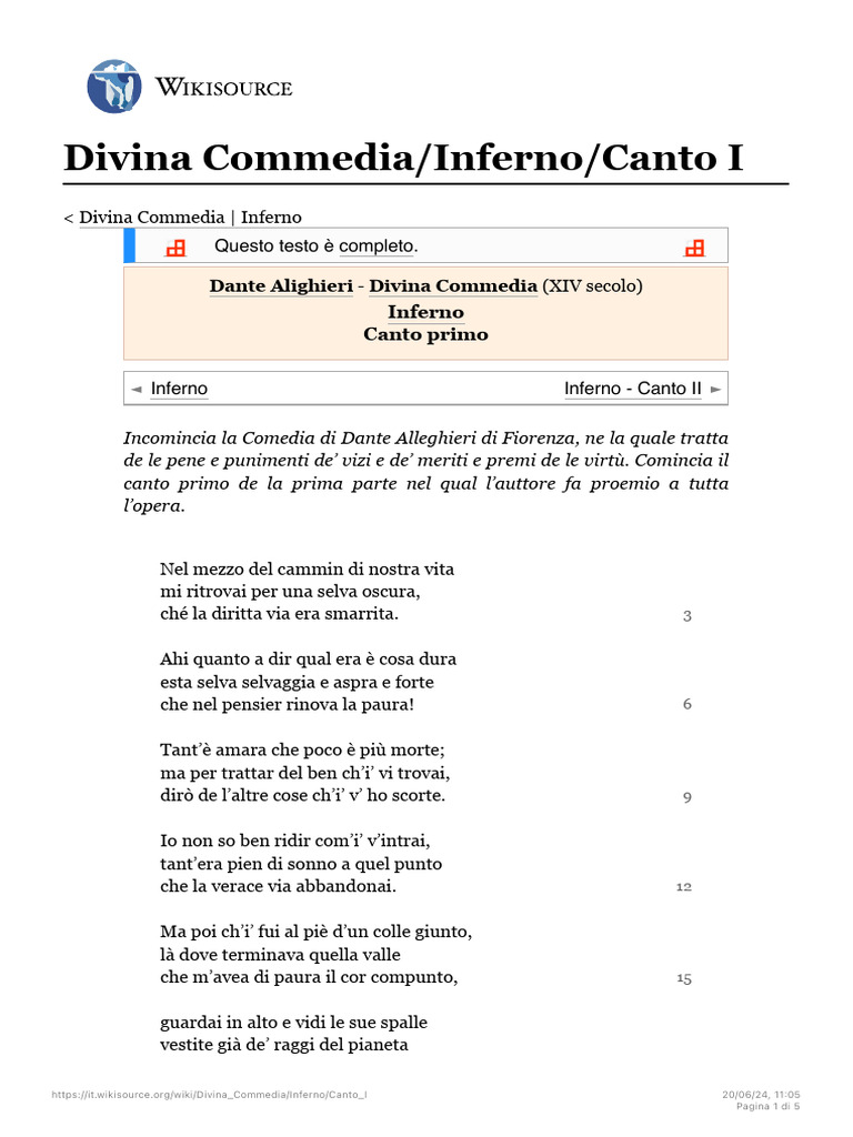 Divina Commedia/Inferno/Canto I