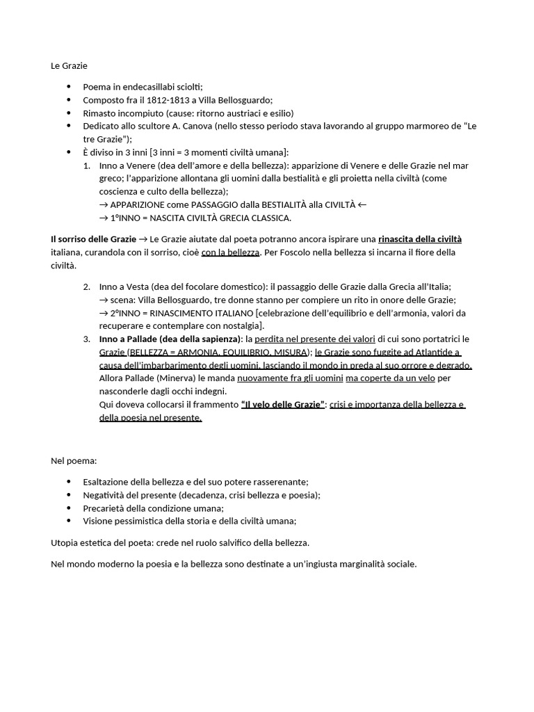 italiana, curandola con il sorriso, cioè con la bellezza. Per Foscolo nella bellezza si incarna il fiore della
