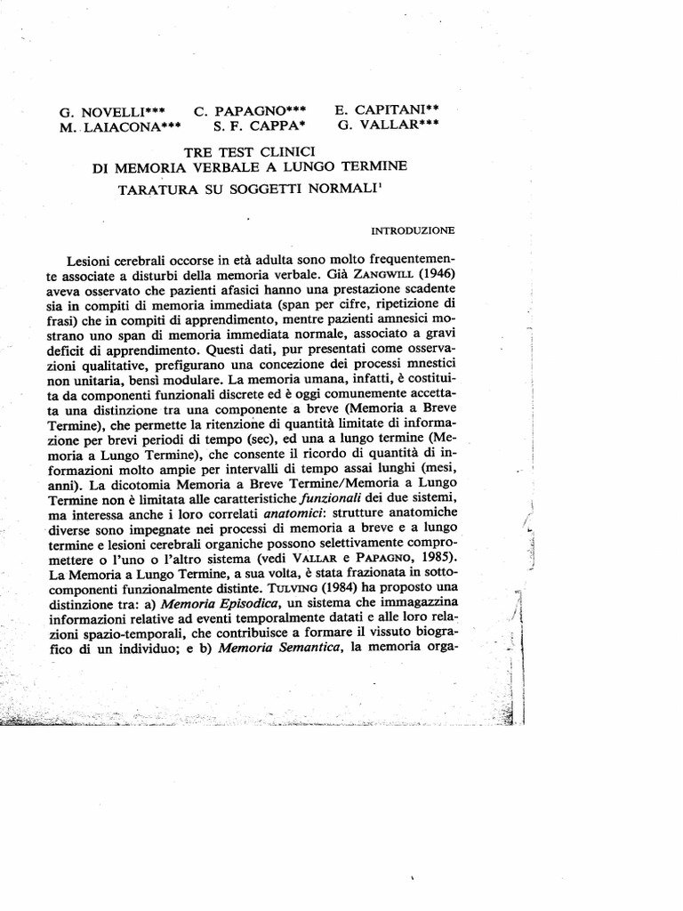 G. NOVELLI*** — C. PAPAGNO*** EE. CAPITANI**